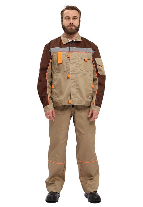 Совместные покупки Пермь Мужская одежда Спецодежда — %% КОС121-363 Костюм "РОЛЬФ" куртка/полукомбинезон, цвет: БЕЖЕВЫЙ/КОРИЧНЕВЫЙ
