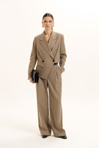 Костюм женский из кулирного полотна состоит из кофты и брюк. Кофта прямого силуэта с двойным капюшоном, люверсами и шнуром. Рукав короткий, втачной, по низу изделия пояс, на полочке принт. Брюки прямые с лампасами из отделочного полотна, верх на поясе с резинкой, низ изделия обработан на плоскошовной машине.