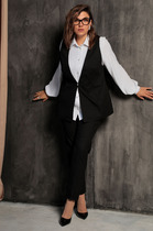 Костюм женский из кулирного полотна состоит из футболки и брюк. Футболка прямого силуэта, горловина круглая, обработана окантовкой, спущенное плечо, рукав короткий втачной, по низу изделия кулиска со шнуром, на полочке принт. Брюки прямые, верх на поясе с резинкой, в боковых швах внутренние карманы, низ изделия на резинке.