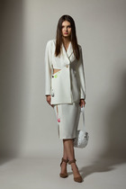 Спортивный молодежный костюм из футера, состоящий из брюк с лампасами на манжете и укороченного свитшота до талии. Свитшот разрезной, из трех цветов ткани, с декоративной корсажной лентой, с воротником-стойкой, на молнии. Рекомендуется ручная стирка при 30 градусах.