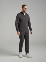Костюм мужской брюки+футболка. Брюки выполнены из футера, притачной пояс на резинке, карманы с двойной мешковиной, низ подшит. Футболка выполнена из вискозного полотна, оформлена декоративной печатью, горловина обработана обтачкой.