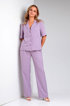 Молодежный костюм с брюками в горошек и однотонной футболкой в цвет горошка. Небольшой рукав. На полочке интересный принт в виде девушки с огромным букетом роз.