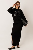 Костюм футболка + шорты. Футболка черная с печатью, шорты в полоску, с рюшей по низу