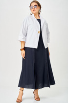 Костюм состоит из толстовки и брюк. Брюки на поясе, с боковыми карманами, с лампасами из отделочного полотна по боковым швам, на эластичном манжете. Толстовка прямая, на молнии, с капюшоном, с карманами "кенгуру", длиной до середины бедра. В нижней части боковых швов обработаны разрезы-шлицы, украшенные декоративной тесьмой. Рукав длинный, с лампасами из отделочного полотна вдоль рукава, на эластичном манжете.