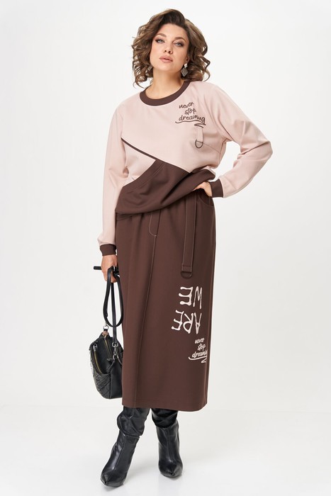 Совместные покупки Пермь Женская одежда Костюмы, комплекты — Костюм Aira Style 24129 пудра+коричневый