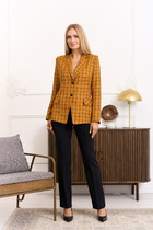 Жакет прямого силуэта понизу с притачным поясом, с застёжкой по притачной планке на петли, пуговицы. Перед с нагрудными выточками. Рукава втачные, одношовные, длинные понизу с притачными манжетами.