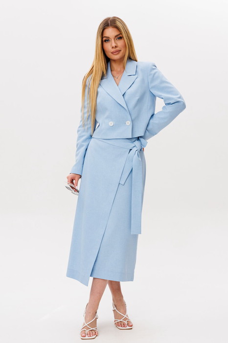 Жакет укороченный полуприлегающего силуэта. По переду нагрудная вытачка. Двухбортная застёжка на петли-пуговицы. Жакет на подкладке.