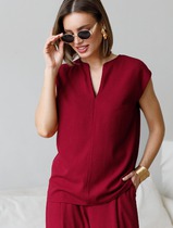 Свободный топ с V-вырезом и цельнокроеным коротким рукавом изо льна с вискозой