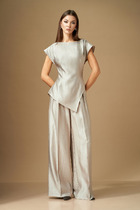 Костюм женский состоящий из юбки из сверкающей ткани в пайетки и блузки из сатина. Юбка прямого силуэта на подкладке длинной миди, на переднем полотнище обработан разрез. Верхний срез юбки обработан эластичной тесьмой что обеспечит комфортную посадку изделия