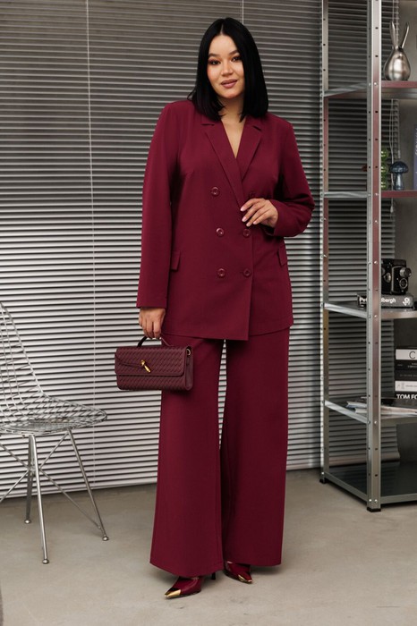 Женский брючный костюм — это идеальное сочетание стиля, комфорта и универсальности, которое станет вашим верным спутником как на деловых встречах, так и на торжественных мероприятиях. Изготовленный из высококачественной поливискозной ткани, этот костюм обеспечивает легкость и приятные ощущения при носке, а его элегантный пиджак и классические брюки подчеркивают вашу женственность и утонченность. Костюм женский 2-х предметный: жакет и брюки. Жакет полуприлегающего силуэта: бочок с выточкой по полочеке, по спинке средний шов. Застежка двухбортная, карман клапан "обманка". Рукав двухшовный. Брюки прямые. По полочке карман и складки. Пояс на резинке. Строгий и модный фасон делает его актуальным в любой ситуации, будь то офис, свадьба или прадничный выход. Длина жакета: 73см . Длина рукава: 62см. Длина брюк: 100 см.