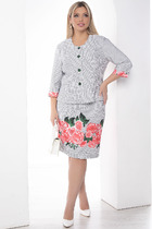 Комплект женский 2-х предметный (блузка, юбка). Отлично подойдет на любой тип фигуры, подчеркнет вашу женственность. Блузка прямого силуэта со спущенным плечом. Застежка- планка на петли и пуговицы. Воротник на отрезной стойке. Рукав одношовный, втачной, 3/4 длины с манжетой. В качестве декора- по манжете пуговицы, по низу блузки широкая подгибка с отстрочкой. Юбка трапециевидного силуета. Пояс на резинке. Длина блузки (50-54)-53см, (56-60)- 55см . Длина рукава (50-60)-32см. Длина юбки (50-60)-91см.