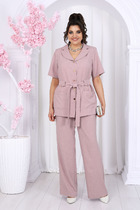 Женский брючный костюм — это идеальное сочетание стиля, комфорта и универсальности, которое станет вашим верным спутником как на деловых встречах, так и при повседневной носке. Изготовленный из высококачественной ткани, этот костюм обеспечивает легкость и приятные ощущения при носке. Костюм женский 2-хпредметный (жакет и брюки). Жакет из текстильной ткани прямого силуэта со спущенным плечом. По полочке идут грудовые выточки из бокового шва. Застежка ассиметричная. Воротник стойка. По спинке встречная складка. Рукав 3/4. По полочке идут отлетные накладные карманы с декором (термонаклейка). Брюки прямые, зауженные к низу за счет защипов. Пояс на резинке, по бокам карманы. Длина спинке:(48-52)-70см, (54-58)- 73см. Длина рукава:(48-58)-33см. Длина брюк (48-50) -93см, (52-58)-95см