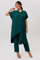 Женский брючный костюм — это идеальное сочетание стиля, комфорта и универсальности, которое станет вашим верным спутником как на деловых встречах, так и при повседневной носке. Изготовленный из высококачественной ткани, этот костюм обеспечивает легкость и приятные ощущения при носке. Костюм женский 2-хпредметный (жакет и брюки). Жакет из текстильной ткани прямого силуэта со спущенным плечом. По полочке идут грудовые выточки из бокового шва. Застежка ассиметричная. Воротник стойка. По спинке встречная складка. Рукав 3/4. По полочке идут отлетные накладные карманы с декором (термонаклейка). Брюки прямые, зауженные к низу за счет защипов. Пояс на резинке, по бокам карманы. Длина спинке:(48-52)-70см, (54-58)- 73см. Длина рукава:(48-58)-33см. Длина брюк (48-50) -93см, (52-58)-95см