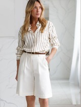Футболка в полоску с V-вырезом и цельнокроеным рукавом из премиального хлопка