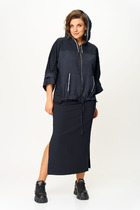 Оригинальный комплект женский 2-х пердментый (блузка, юбка)  от бренда Anastasia, идеальный для любого случая. Этот комплект сочетает в себе элегантность и комфорт, что делает его подходящим как для повседновной носки, так и для праздничных мероприятий.    Блузка из атласной ткани прямого силуэта со спущенным плечом. По бокам закругленные разрезы. Рукав с запахом и разрезом, на манжете. Застежка – планка на петли и пуговицы. Воротник на отрезной стойке. Стойка и манжета из отделочной ткани. По спинке идет отрезная кокетка. Такой женский офисный стиль можно носить, сочетая с другими вещами гардероба, создавая новые образы. Ткань атласная качественная и очень комфортная. Юбка А-силуэта, длинна миди.  По передней части идет застежка-обманка с пуговицами.  По бокам карманы. По спинке средний шов, переходящий в застежку молнию. Пояс отрезной . Длина по спинке: (48-52)-70 см, (54-58)-72 см. Длина рукава с манжетой: (48-52)-55 см, (54-58)-57 см. Длина юбки: (48-58)-80 см