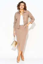 Стильный женский костюм от бренда Anastasia, идеальный для любого случая. Этот костюм сочетает в себе элегантность и комфорт, что делает его подходящим как для деловых встреч или прогулок. Комплект состоит из жакета и брюк. Костюм женский 2-хпредметный (жакет и брюки). Жакет на подкладке из текстильной ткани полуприлегающего силуэта со спущенным плечом. Приталивание по талии создается за счет кулиски с резинкой. По полочке идут грудовые выточки из бокового шва. Застежка двубортная. Воротник английского типа. По правому борту идет отделка- кант. По бокам карманы. По спинке средний шов. Рукав 3/4. Брюки, зауженные к низу. Пояс на резинке. По передней части – вставка кант. Стильный костюм отлично подойдет для долгих прогулок или для работы, для офиса. Брюки -клеш, пояс на резинке. По внутреннему срезу по низу идут разрезы. Отдельный части костюма легко будут сочетаться с вещами из Вашего гардероба. Модель можно отнести к стилю кэжуал. Костюм можно носить с туфлями, кроссовками или ботинками. Обязательно добавьте наш бренд в избранное и следите за новинками, распродажами, скидками и акциями! Хороших покупок от «Анастасия». Длина (по спинке):(50-52)- 69см, (54-58)-70 см, (60-64)-71см. Длина рукава: (50-64)- 32см. Длина брюк: (50-54):- 91см, (56-60)- 64см, (62-64)-96см