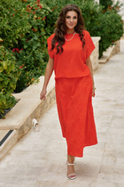 Бренд белорусской женской Anastasia представляет костюм двойку. Костюм женский 2-х предметный (жилет, юбка-брюки) из костюмной ткани станет отличным дополнением к Вашему гардеробу. Подойдет для повседневной носки (работа, офис, прогулки). Достаточно дополнить его соответствующими предметами из вашего гардероба: блузка, майка, водолазка, гольф, свитер, лонгслив, свитшот. Или акссесуарами: ремешок или пояс. Жилет полуприлегающего силуэта, со спущенным плечом. Может быть самостоятельным элементом гордерба. Застежка двухбортная. Воротник цельнокроеная стойка. По полочке идет грудовая выточка из бокового шва, по спинке средний шов. Трендовая юбка-брюки. По передней части идут встречные складки (центральная и две боковые). Пояс отрезной, по бокам резинка. Застежка – потайная молния по шву сидения по спинке. По бокам - карманы. По низу брюк – широкая подгибка. Акцентный элемент- пуговицы. Благодаря своему крою и фасону костюм подчеркивает женственные формы и скрывает то, что должно быть незаметным. Это повседневный вариант на каждый день для занятий в школе или для офиса, на работу или на прогулку. Наденьте его на деловую встречу, официальное мероприятие, школьное торжество. Модель подойдёт для образа в университет или колледж. Одежда для женщин по отличным ценам и высокого качества - это Anastasia! Добавляете нас в любимые бренды и вы всегда будете в курсе всех акций и новинок! Хороших покупок от «Анастасия». Длина по спинке (48-52)-72см, (54-58)-74 см. Длина юбки-брюк (48-58) - 85см.