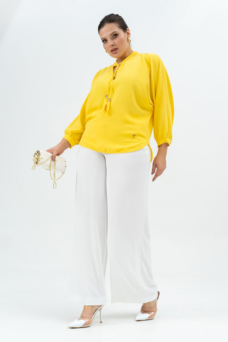 Костюм женский для любого мероприятия.  Блузка женская  как для праздников так и для любого повода, , покроя "летучая мышь" , со стойкой на которую настрочена завязка с декоративными  элементами , со швом по центру полочки, рукава цельнокроёные, застёгивающиеся на петлю и пуговицу. Низ блузки  по спинке длиннеее, по полочке короче.  Брюки женские, прямого силуэта  на притачном поясе по полочке и   с резинкой по спинке.