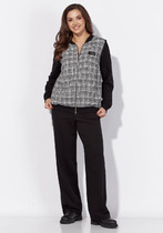 костюм женский из льна. Кимоно оверсайз, длиной до середины бедра. Рукав 3/4, низ широкий на манжете, без застежки. По переду фигурный запах. Талию можно подчеркнуть при помощи съемного пояса или комбинировать с корсетом.