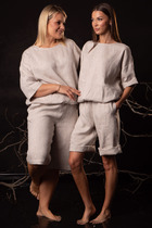 Оверсайз жакет имеет разрезы по бокам, что делает наряд еще более интересным и удобным.