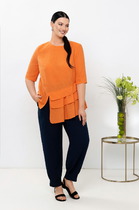 Полуприлегающий силуэт, красивые конструкторские линии плеча с сосборенным рукавом из ажурного кружевного полотна. Застежка по всей длине жакета на пуговицы.