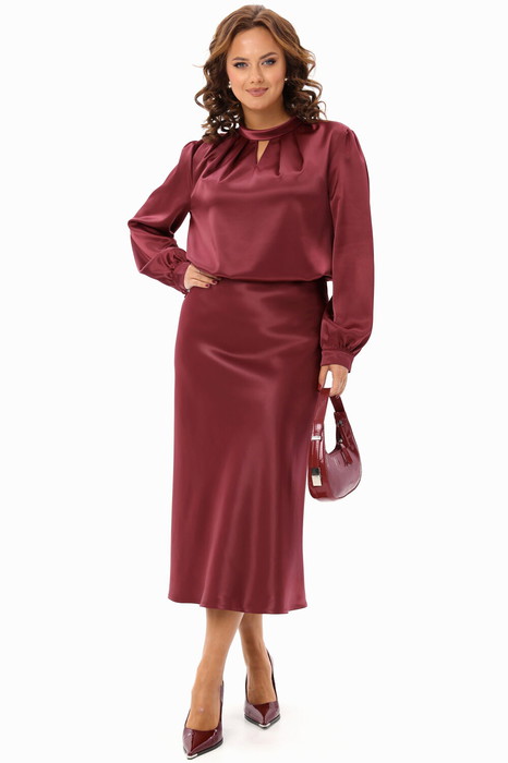 Нарядный женский комплект из гладкой ткани с атласной структурой украсит вас на любом праздничном или торжественном мероприятии.