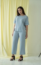 Стильный брючный комплект-тройка с широкими брюками подчеркнет Вашу женственность и придаст образу элегантность.