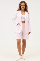 Жилет прилегающего силуэта с центральной бортовой застежкой на петли и пуговицы, на подкладке. Вырез горловины V-образной формы. Перед - с талиевыми вытачками и прорезными карманами с листочкой. Спинка со средним швом и талиевыми вытачками.