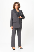 Этот 3-х предметный комплект состоит из жакета, корсетного топа и брюк. Жакет - настоящая жечужина в гардеробе. Небанальный вариант застёжки сбоку на лицевой стороне, и потайной пуговицей внутри изделия придаёт жакету характер, подчёркивает силуэт и линию талии. Жакет выгодно акцентирует фигуру, создавая утончённый и женственный образ. Благодаря декоративным рюшам из вуали, он легко станет центральным элементом образа. Карманы с клапанами. Корсетный топ с открытыми плечами — воплощение чувственной элегантности. Открытые плечи подчеркивают линию шеи и ключиц, а корсетный крой создает безупречный силуэт. Роскошный силуэт и акцентная баска делают его идеальным выбором для особенного вечера. Также топ отлично вписывается в повседневные образы. Брюки станут глотком свежего воздуха среди широких силуэтов и брюк палаццо. Их облегающий крой подчёркивает линию бедёр и тали, а затем изящно расклешается от колена.Такой фасон позволит скорректировать фигуру и подойдёт для строго дресс кода. Вертикальные линии по центру брючин вытягивают силуэт и удлиняют ноги. Застёжка классическая - молния и пуговица в цвет изделия.