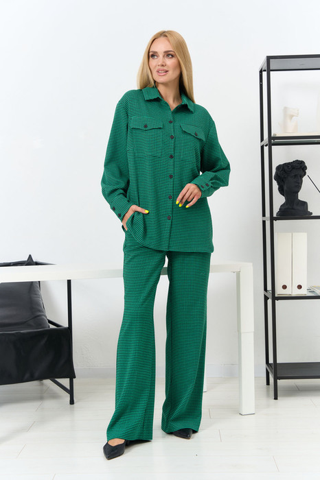 Блузка свободного покроя с воротником на стойке, рукав втачной по низу на манжете, застежка на планке на петли и пуговицы, по переду накладные карманы.