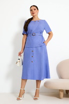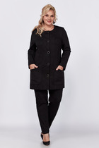 Комплект женский-двойка, из текстильной ткани, жакет удлиненный, полуприлегающего силуэта с центральной бортовой застежкой на пуговицы до линии перегиба лацкана. Спереди рельефные швы от плечевого шва, отрезной бочок и карман с клапаном. Спинка с рельефами от плечевого шва. Рукав втачной, двухшовный. Воротник пиджачного типа. Жакет на подкладке, длина по спинке 67 см, длина рукава 62 см. Брюки прямые,классические, с заутюженными стрелками,по переду обработаны карманы с отрезным бочком,застежка на тесьму-молнию и 1 пуговицу.На задних половинках обработаны вытачки и имитация карманов с листочкой, пояс в брюках притачной. Длина брюк от талии по боковому шву 100 см.