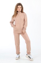Комплект женский-двойка, из текстильной ткани, жакет удлиненный, полуприлегающего силуэта с центральной бортовой застежкой на пуговицы до линии перегиба лацкана. Спереди рельефные швы от плечевого шва, отрезной бочок и карман с клапаном. Спинка с рельефами от плечевого шва. Рукав втачной, двухшовный. Воротник пиджачного типа. Жакет на подкладке, длина по спинке 67 см, длина рукава 62 см. Брюки прямые, классические, с заутюженными стрелками, по переду обработаны карманы с отрезным бочком, застежка на тесьму-молнию и 1 пуговицу. На задних половинках обработаны вытачки и имитация карманов с листочкой, пояс в брюках притачной, по боковым швам резинка. Длина брюк от талии по боковому шву 103 см.