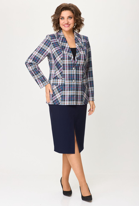 Костюм БелЭльСтиль 412/597 синяя клетка + синий однотон