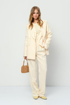 Классический костюм, идеальный баланс элегантности и стиля. Универсальный крой, пиджак с пиджачным воротником и прямые брюки создают выигрышный силуэт для любой фигуры. Практичные детали, карманы с клапанами добавляют костюму солидности и функциональности. Жакет на подкладке, длина по спинке 67 см, длина рукава 62 см. Длина брюк от талии по боковому шву 103 см.