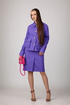 Женский комплект 2-х предметный состоит из жакета и юбки. Жакет классический,с  V-образным вырезом, полуприлегающего силуэта с центральной бортовой застежкой на петли-пуговицы. Спереди рельефные швы от плечевого шва,отрезной бочок и карман с втачной листочкой. Спинка с рельефами от плечевого шва. Рукав втачной, двухшовный, укороченный, с небольшим разрезом в локтевом шве. Перед жакета на подкладке. Длина рукава 48 см, длина жакета по спинке 59 см. Юбка прямого силуэта, верхний срез юбки обработан обтачкой, заднее полотнище со средним швом, застегивается на потайную молнию. Шов переходит к низу в шлицу. Юбка по переднему и заднему полотнищу с кокеткой и вертикальными рельефами, швы отстрочены в цвет юбки. Длина по боковому шву 70 см. Юбка на подкладке.