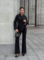Женский костюм двойка - идеальный выбор для стильных и уверенных в себе женщин. Он состоит из удлиненного жакета и классических брюк, выполненных из качественной джинсовой хлопковой ткани, что обеспечивает комфорт и свободу движений. Жакет имеет свободный силуэт, центральную застежку на пуговицы и английский воротник. Спереди предусмотрены карманы с клапанами, а рукава имеют 3/4 длины. Брюки прямого кроя с заутюженными стрелками, удобные карманы и застежку на молнию с пуговицей. Пояс на резинке обеспечивает дополнительный комфорт, а шлевки позволяют носить пояс. Этот костюм отлично подходит для работы и повседневных выходов, подчеркивая женственность и стиль.