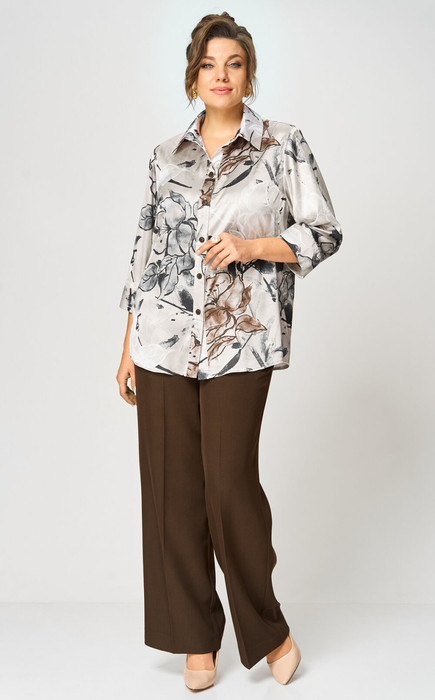 Этот комплект сбалансированный ансамбль для современной деловой женщины. Мы объединили две вещи, которые составляют основу стильного и практичного гардероба. Верх: блуза прямого кроя из нежного текстиля. Рукава 3/4 с манжетами и отложной воротник дарят образу лёгкость и утонченность. Центральная застежка на пуговицы и боковые разрезы добавляют практичности. Длина по спинке 74 см, длина рукава 45. Низ:Брюки-палаццо, модель идеального кроя, создает изящный силуэт и невероятный комфорт. Скрытые карманы и фасон с высокой талией делают их одновременно стильными и практичными. Длина брюк от талии по боковому шву 103 см.