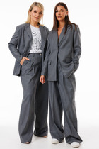 Костюм женский двухпредметный полуприлегающего силуэта,состоит из жакета и брюк. Жакет с декоративным подрезом по переду полочки, рукав втачной 3/4 с разрезом в локтевом шве, без воротника, застежка на петли и пуговицы, карманы листочки обработаны в подрезе. Брюки полупприлегающие, застежка молния, в поясе по спинке резинка.
