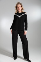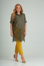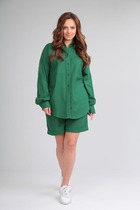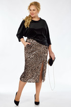 Костюм женский полуприлегающего силуэта, джемпер и юбка. Юбка выполнена из блестящей тани, с отрезной кокеткой, разрезом и каррманоми в боковом шве. Джемпер с цельнокроенным рукавом и разрезами в боковых швах