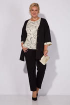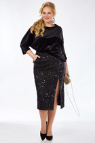 Костюм женский полуприлегающего силуэта,джемпер и юбка.Юбка выполнена из блестящей тани, с отрезной кокеткой, разрезом и каррманоми в боковом шве.Джемпер с цельнокроенным рукавом и разрезами в боковых швах.