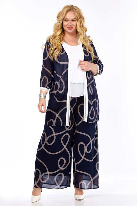 Костюм женский 3-ех предметный .Кардиган с втачным рукавом , разрезами в боковых швах.Блузка двойная на брителях. Штаны на подкладке  с карманоми в боковых швах.