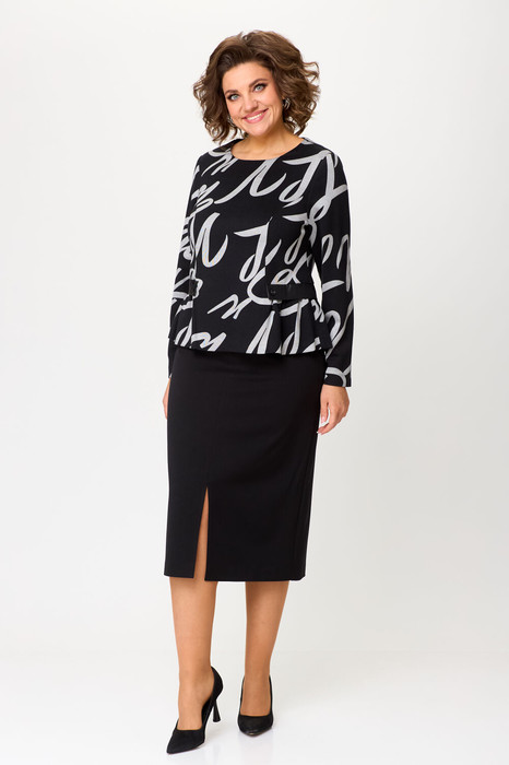 Элегантный женский костюм выполнен из комфортного трикотажа с актуальным принтом.