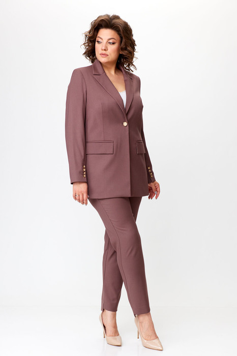 Элегантный женский костюм выполнен в классическом стиле, состоит из жакета и брюк.