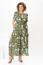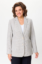 Комплект брючный (жакет+брюки). Жакет полуприлегающего силуэта с центральной застёжкой на петли и пуговицы. По спинке средний шов,бочки, по переду талиевые вытачки,обработаны прорезные карманы с обтачками и клапаном.Рукав втачной двушовный. Воротник - шалиевый. Брюки зауженные к низу, верхний срез обработан поясом с резинкой,застёжка на тесьму-молнию, петлю и пуговицу. В боковых швах обработаны карманы. В качестве отделки используется фурнитура и отделочные детали(съёмный пояс).