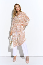 Майка прямого силуэта, по боковым швам разрезы, по переду нагрудные вытачки; горловина V-образной формы, обработана обтачкой.