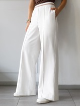 Комплект брючный состоит из майки и брюк. Майка свободного кроя, рукав реглан длиной до линии локтя, горловина обработана бейкой, по переду отделочный карман. Брюки широкие с заужением к линии низа. На задней половинке-кокетка, отрезная боковая часть. В рельефном шве передней половинки-карманы. Верхний срез обработан поясом с резинкой. Шлевки из отделочной ткани, съемный шнур-пояс. В качестве отделки используются детали и фурнитура.