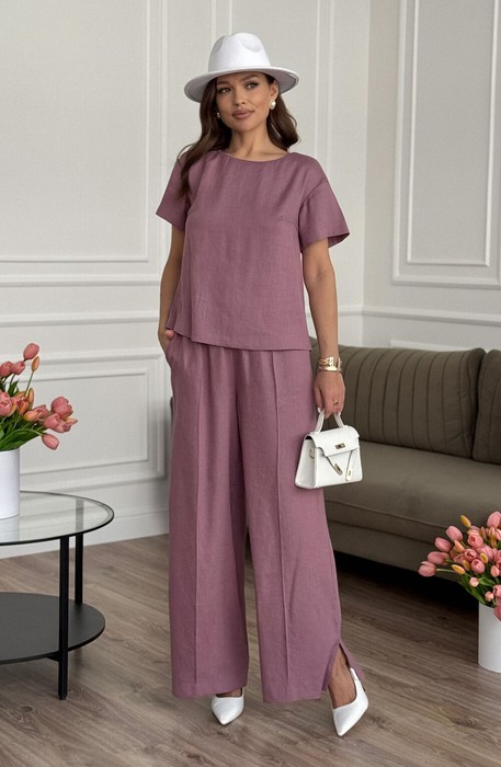 Костюм женский двух-предметный, состоящий из брюк и блузы.