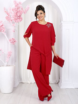 В элегантном летнем костюме, который состоит из удлинённого блузона и свободных брюк на резинке, вы всегда будете в центре внимания! Костюм сшит из непрозрачного струящегося материала. Лиф блузона скроен на запах в два слоя спереди и сзади, поэтому блузон не просвечивает, а удлинённые полочки красиво развиваются при ходьбе.