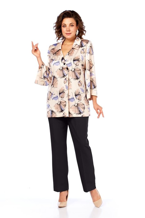 Костюм Элль стиль 2394/1 бежевый принт/черный