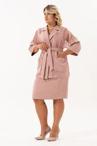 Комплект женский, состоящий из куртки и юбки. Куртка о-образного силуэта на подкладке. Застежка на молнии. Спинка с декоративной кокеткой, придающей конструкции более изящный силуэт. Передняя часть с рельефом и карманом с листочкой. Воротник стойка, линия плеча спущенная. Рукав втачной со средним швом. Низ куртки со сборкой, добавляющая стильный акцент. В юбке силуэт прямой, зауженный к низу, подчеркивающий фигуру. Переднее и заднее полотнище с подрезами и вытачками. Заднее полотнище со средним швом, шлицей и патайной молнией. Переднее полотнище со средним швом, обеспечивает симметричный внешний вид. Верх юбки обработан обтачкой. Универсальный дизайн сочетается с различными предметами гардероба.